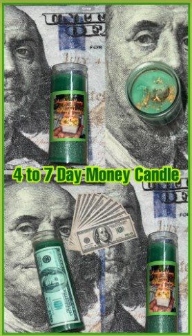 Our 4 to 7 Day Money Candles are infused with money herbs and real money to draw new customers to your business, abundance, prosperity, fast money, help tackle debts, loans, good health and wealth. Each candle will come with suggestions on when you should light your candle for best results. Every candle will come with a money surprise from $1 to $100 it’s random and exciting to see what you get. Remember you are the magic so speak your intentions over your candle before lighting it. Many Blessings To You All Ase ALAFIA