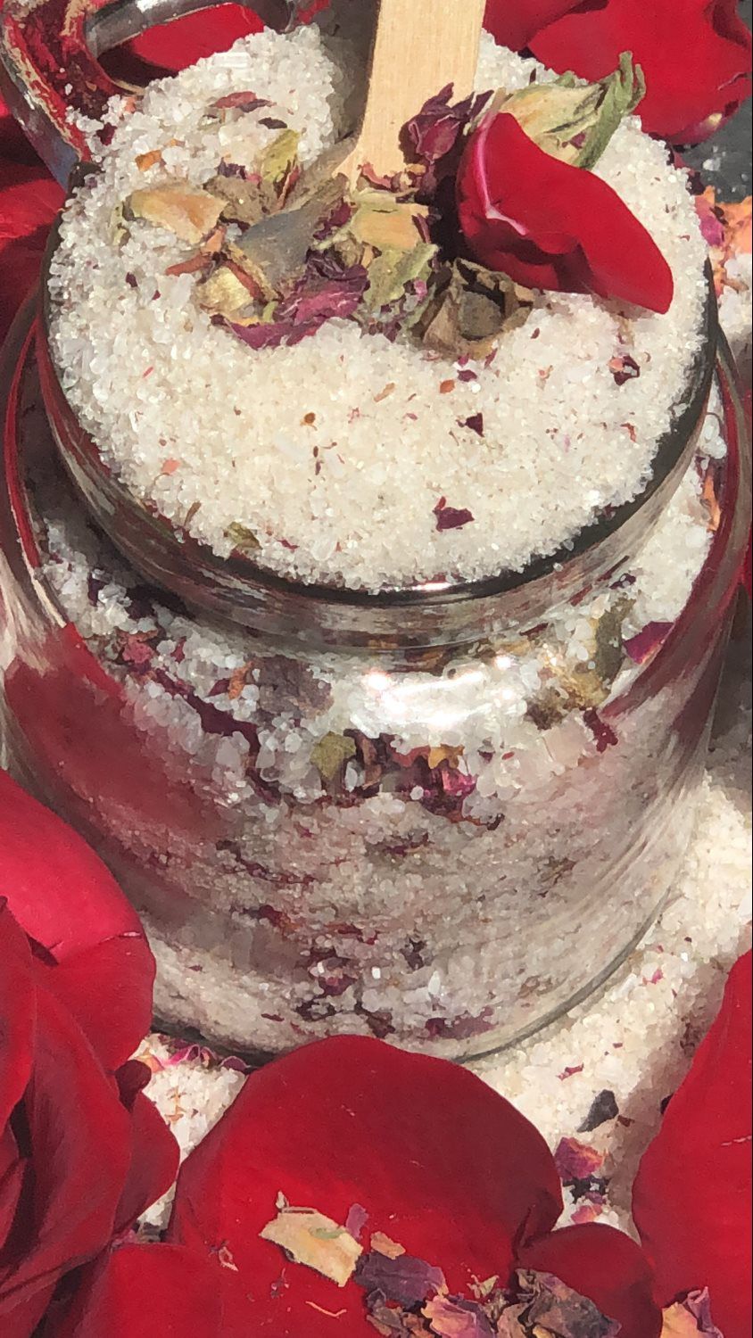Relax my love..A beautiful blend of Rose, Geranium, Lavender & Ylang Ylang pure essential oils to soothe and relax your body after a long day! Amor de una rosa is a self love bath spa soak to treat yourself with love, patience & kindness. Add two to three scoops to your bath water and enjoy!
