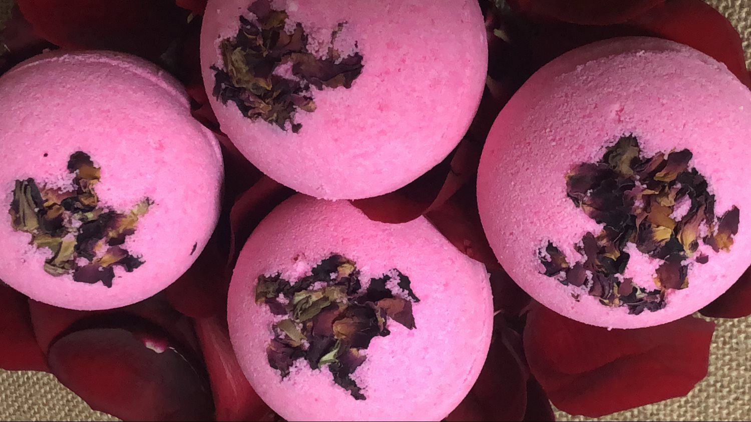 Ingredients: rose petals, citric acid, fragrance or essential oils , cosmetic grade glitter, colorant bicarbonate nourishing oils coconut oil
