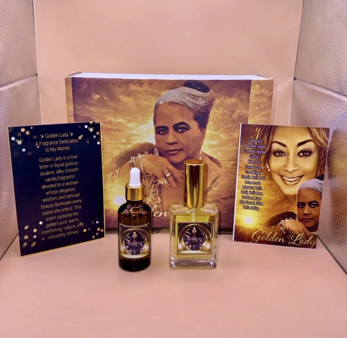 Introducing the Golden Lady Luxe Bundle—a radiant pairing created to honor elegance, warmth, and divine femininity. This exclusive set brings together the Golden Lady Perfume and Golden Lady Extrait Body Oil, designed to be worn alone or layered together for a deeper, more luminous scent experience.