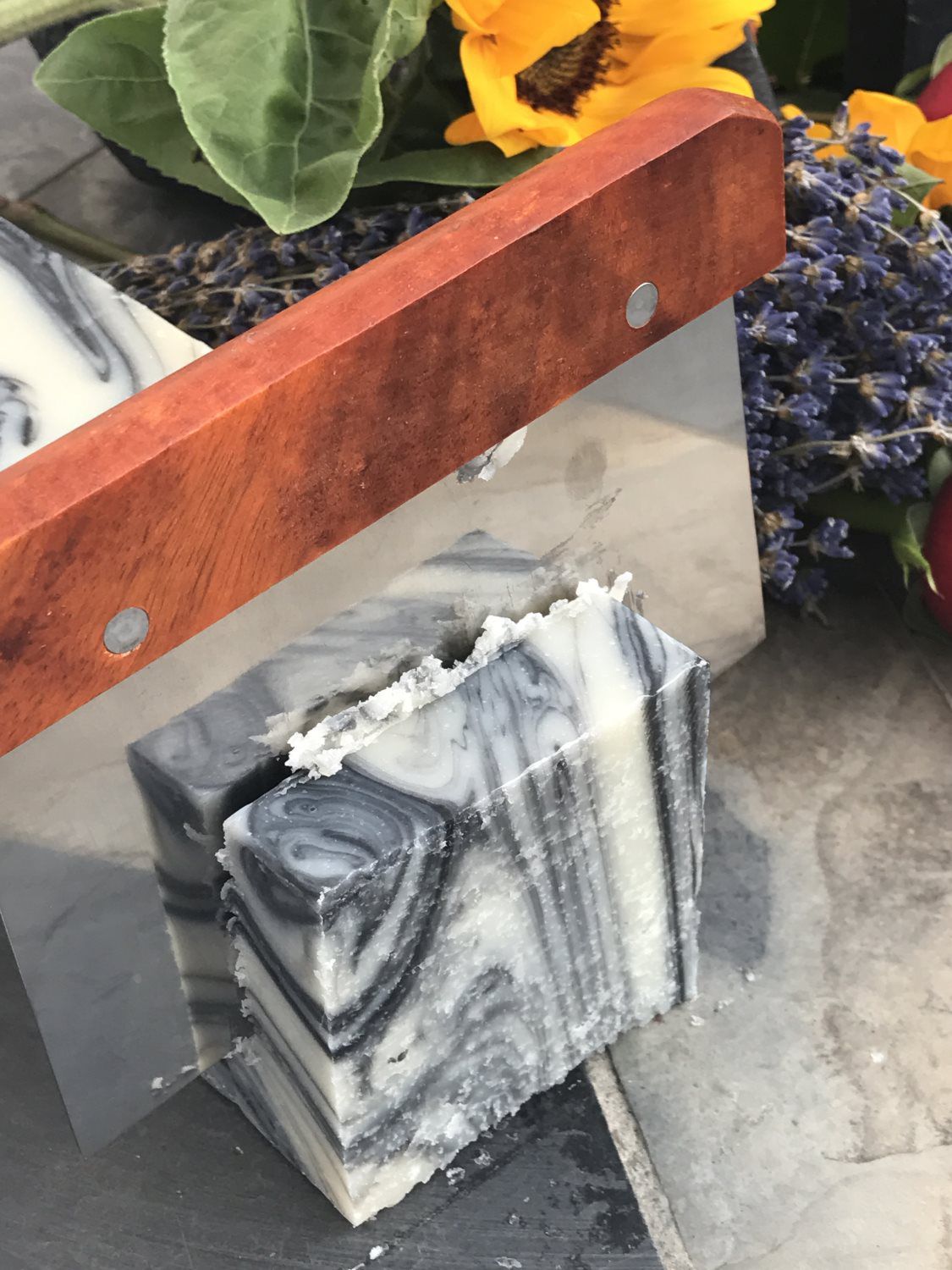 Our Indian Rain Dance Soap Bar is made with Love and Infused with essential oils of patchouli and Sandelwood swirled with activated charcoal. Each slice is Heavenly Scent