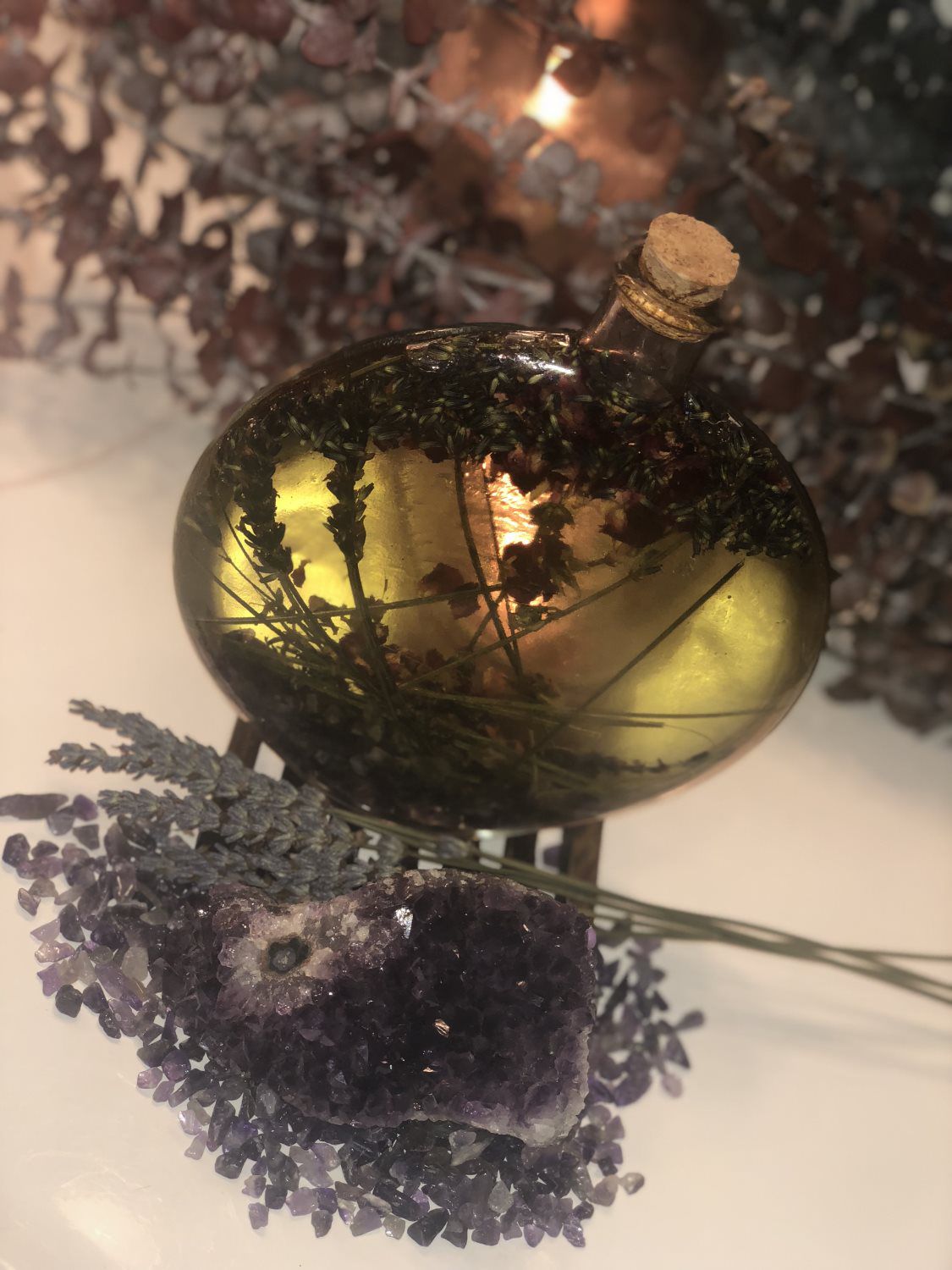 Oil bathing is a luxury spa treatment to soothe tired muscles and help with joint movement. My garden blend is exotic and sensual leaving you feeling beautiful and rejuvenated with healing stones of amethyst, lavender, rose buds and euphoria blend of pure essential oils to soothe your mind body and soul. Add a few drops to your bath and let the magic begin your skin will thank you for it.