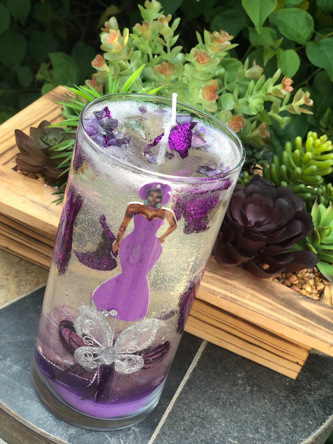 I wear the Royal Crown dressed in rich colors of violet and deep hues of purples. I am the divine wisdom and purpose of bliss, understanding and enlightenment. Awakened spiritually connected to higher power I am Wombman I walk in authority my head held high to my God in heaven. I’m a Jewel in his crown Royal Goddess infused in a pure essential oil blend of chamomile, geranium, Orange and palmarosa. I’m adored by simply looking at me, you don’t need to light me I illuminate with crystals of amethyst, clear quartz, white tourmaline Loyal & Royal I am Wombman.