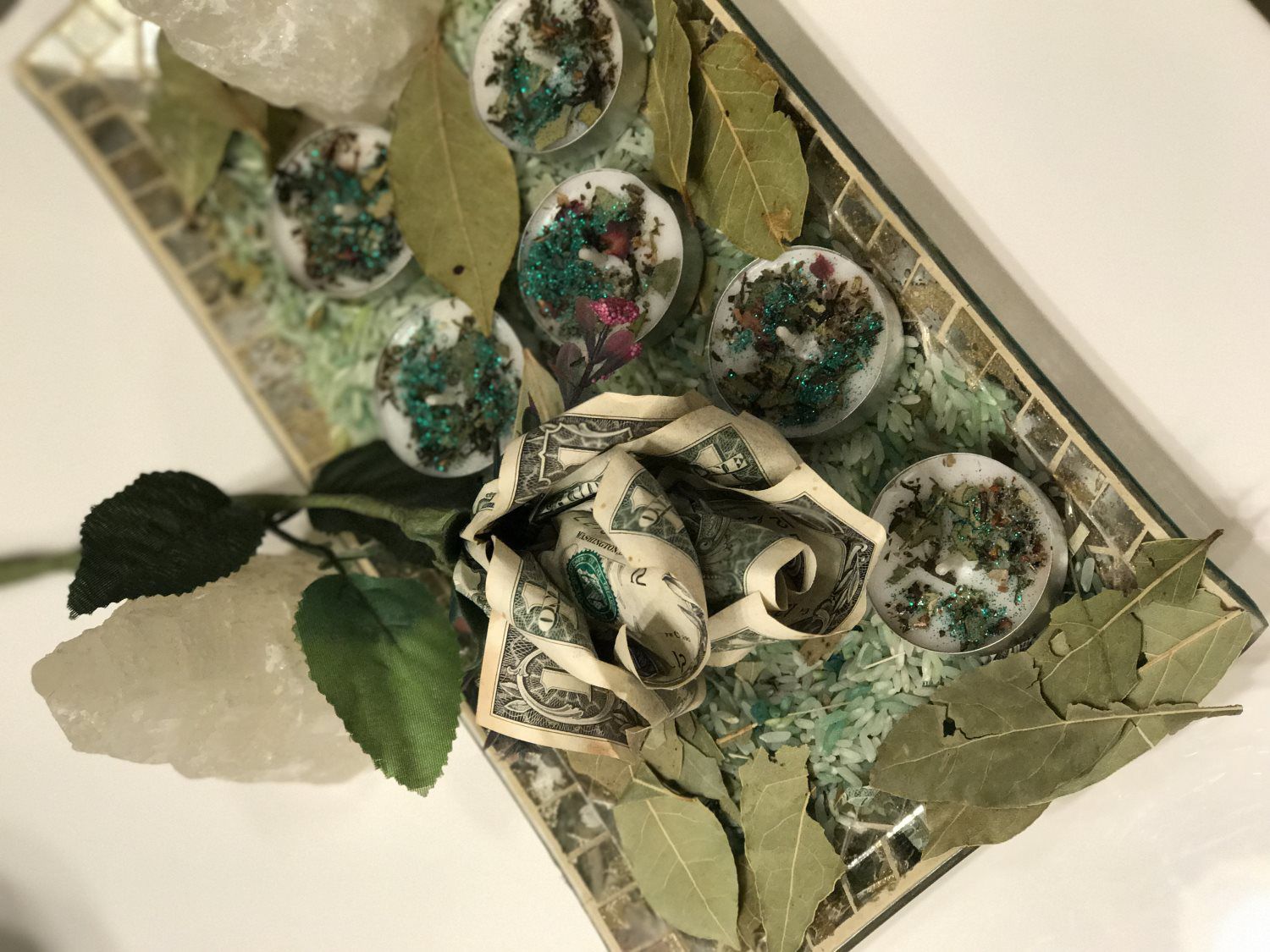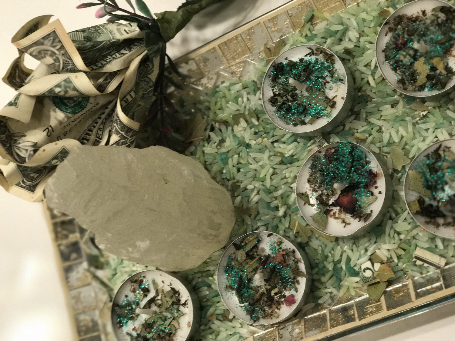 Light your tealight candle to bring you prosperity and abundance. Infused with pure love, essential oils and herbs.