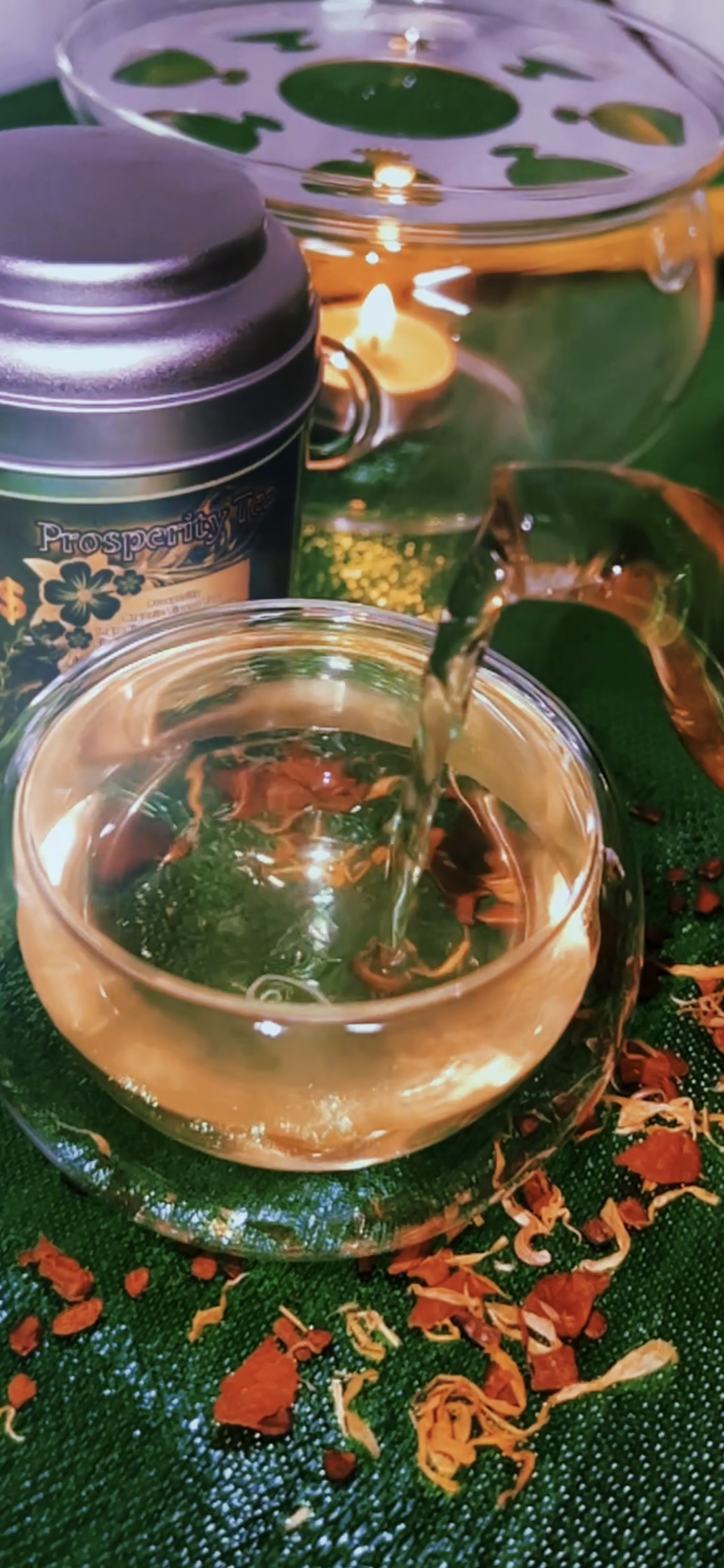 Sit back after a long day and renew your spirit with our Prosperity Tea. Our Prosperity tea is the color of citrine crystals and as you sip visualize good health, wealth, prosperity and abundance flowing to you with ease. Light one of our Money & Prosperity incense, Money candles and write your intentions and prayers in our Manifesting Journal and watch your manifesting come to reality. Make this an experience a ritual of abundance and prosperity and remember YOU ARE THE MAGIC! Each can comes with a Citrine Crystal to use for your Manifesting & Meditation.
