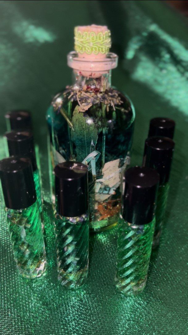 Our Wealth & Abundance Oil is Packed with Money Drawing Herbs, money, Roots and Citrine Crystals, specially blended with specific essential oils that promote Wealth and Prosperity. Each roller bottle has been blessed and prayed over to bring blessings, success, prosperity and abundance.